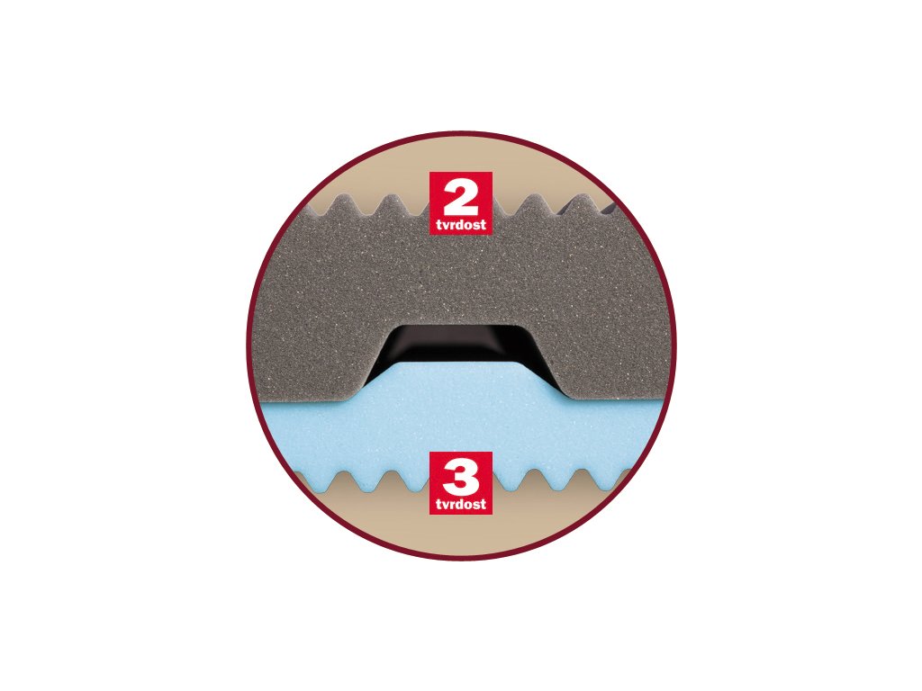 Zloženie matraca tvoria dve kvalitné elastické peny typu MediFoam s objemovou hmotnosťou 35 kg/m³. Ich rozdielne tuhosti vytvárajú možnosť výberu optimálneho ležania. Mäkšia strana matraca (tuhosť č. 2) poskytuje jemnejšie podoprenie tela a ocenia ju najmä ženy alebo osoby preferujúce pohodlie. Naopak, tvrdšia strana (tuhosť č. 3) zabezpečuje pevnú oporu a je vhodná pre mužov alebo tých, ktorí vyhľadávajú tvrdší podklad.