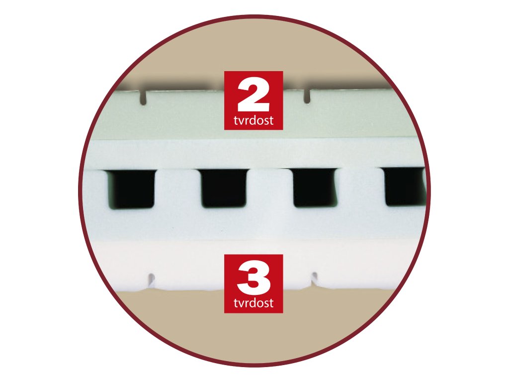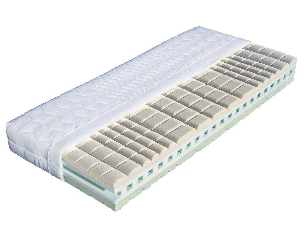 Stredová časť matraca je vyrobená z vysokogramážnej tvrdenej peny MediFoam (40 kg/m³), ktorá poskytuje pevnú a stabilnú oporu chrbtici v jej prirodzenej polohe. Vrchná a spodná vrstva matraca sú tvarované do antidekubitného profilu z pien MediFoam s hustotou 35 a 40 kg/m³. Tento tvar napomáha správnemu rozloženiu tlaku, čím sa znižuje riziko preležanín a zároveň sa matrac dokonale prispôsobí telu.