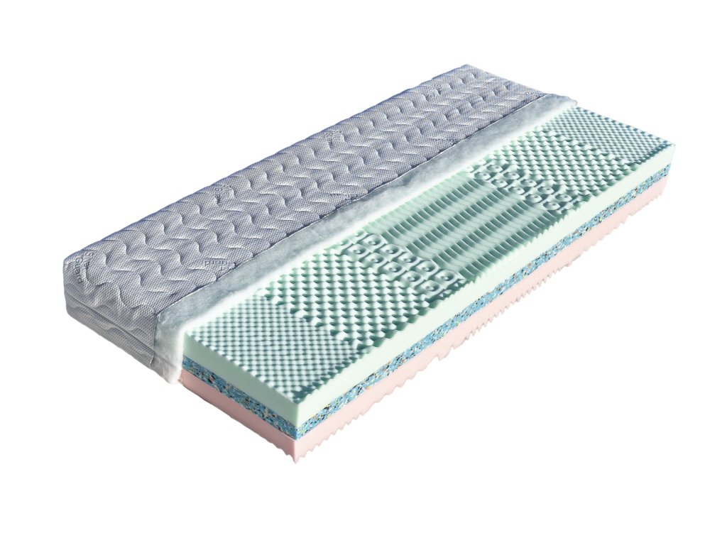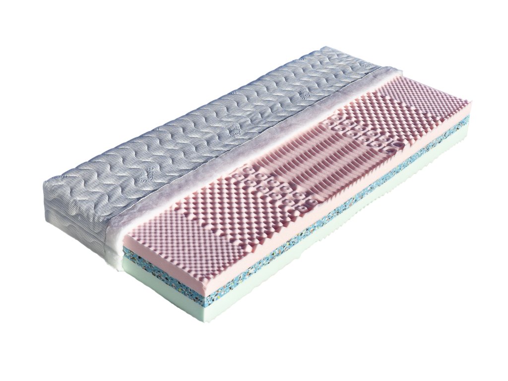 Jadro matraca je vystužené spájanou PUR penou, čo zvyšuje jeho stabilitu a predlžuje životnosť. Matrac má nosnosť až 140 kg, takže je vhodný aj pre ťažšie osoby.