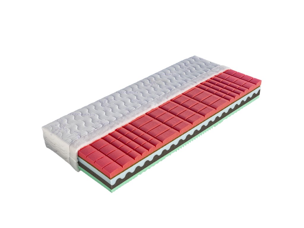Jadro matraca tvorí dvojvrstvová štruktúra z kvalitných pien s rozdielnymi vlastnosťami. Čierna elastická pena s hustotou 35 kg/m³ sa prispôsobí telu, zatiaľ čo modrá pevnejšia pena s rovnakou hustotou zvyšuje odolnosť a nosnosť matraca. Obe peny sú navzájom spojené špeciálnym vlnovým profilom, ktorý zlepšuje priedušnosť a flexibilitu celého jadra.